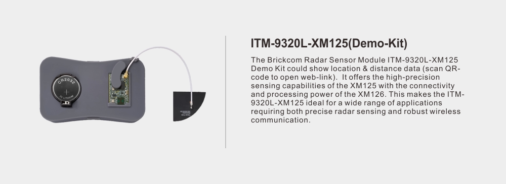 The Brickcom Radar Sensor Module ITM-9320L-XM125 combines the capabilities of the XM125 and XM126 modules into a single, powerful solution. It offers the high-precision sensing capabilities of the XM125 with the connectivity and processing power of the XM126. This makes the ITM-9320L-XM125 ideal for a wide range of applications requiring both precise radar sensing and robust wireless communication.